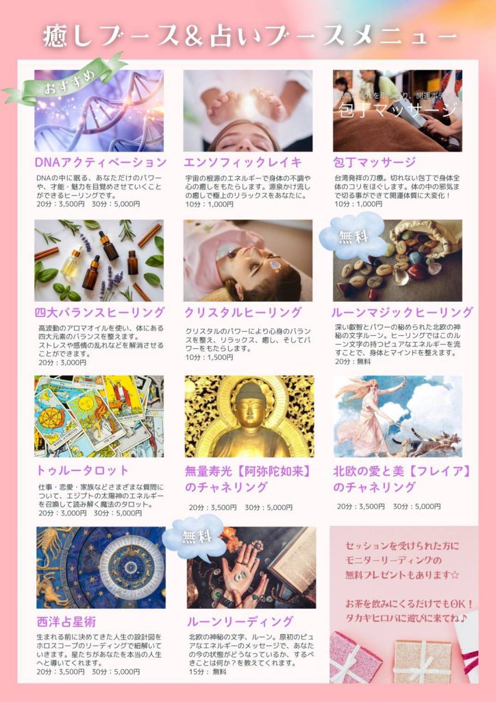 毎月初めに京都伏見の深草商店街「タカギヒロバ」にて、古から伝わる本物の「占い」と「ヒーリング」を体験していただけます。